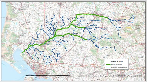 Kort over Primært laksevand (Laksevand A) – Varde Å System